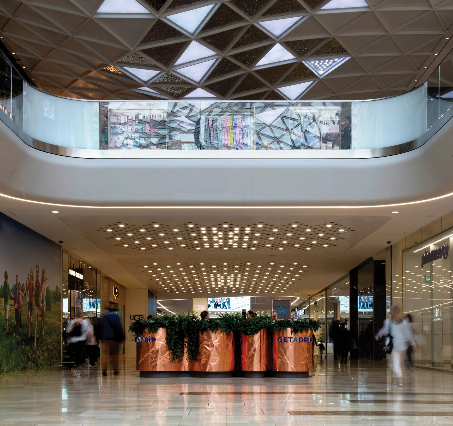 The Copper Ribbon creates space within folds where shoppers can escape the busy, transient environment of Westfield London and take a moment to hideaway and have a Vitamin Drip.